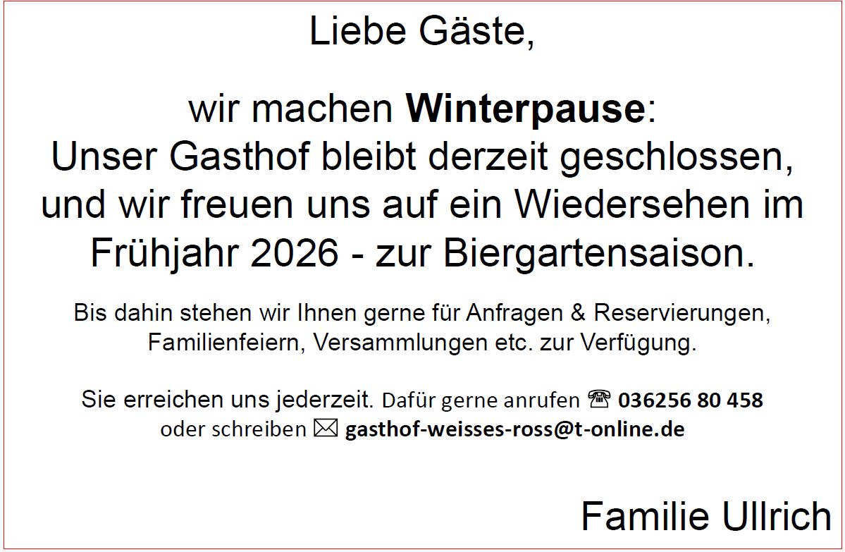 Gasthof "Weißes Roß" in Mühlberg - Familientradition seit 1618